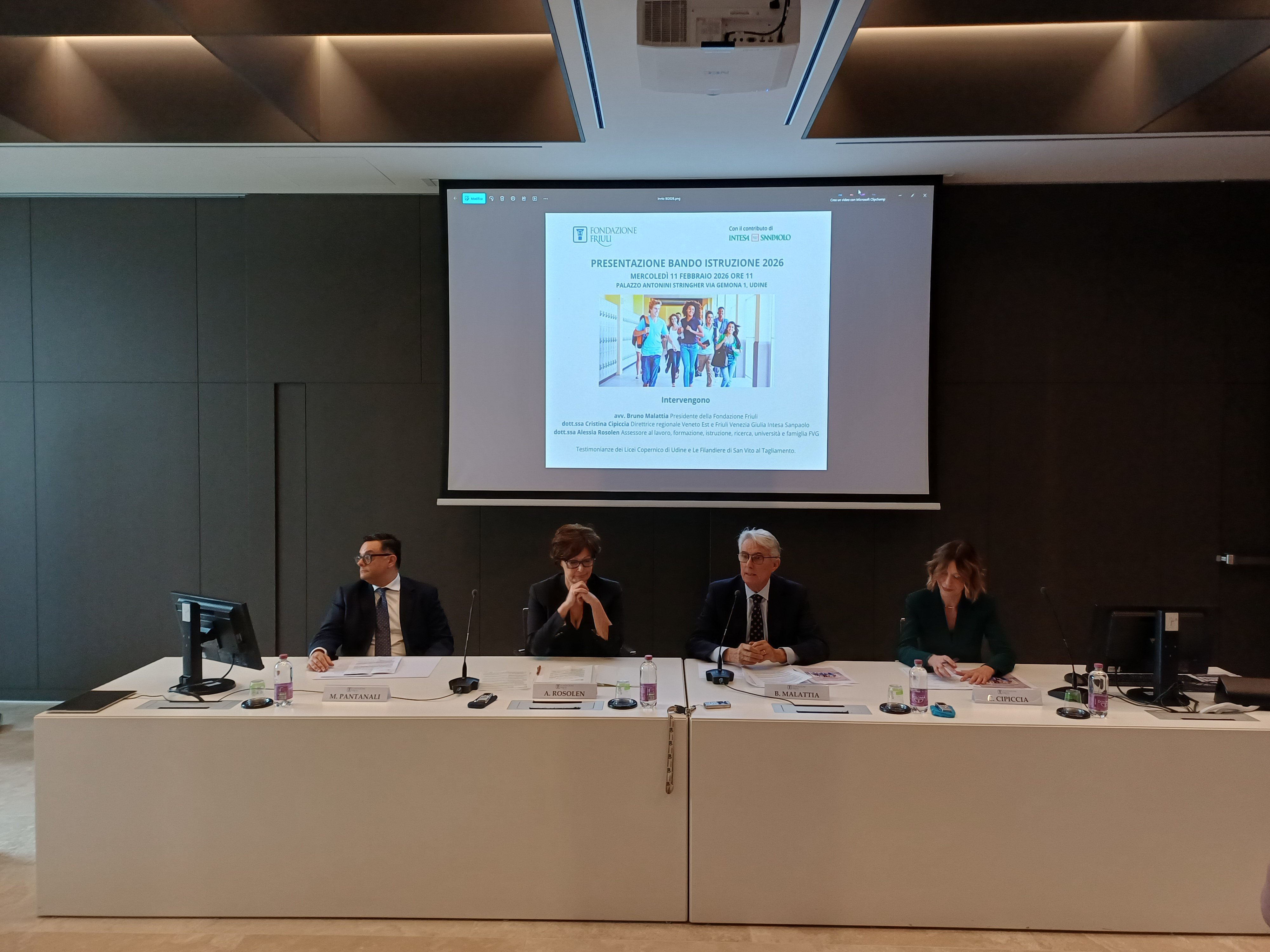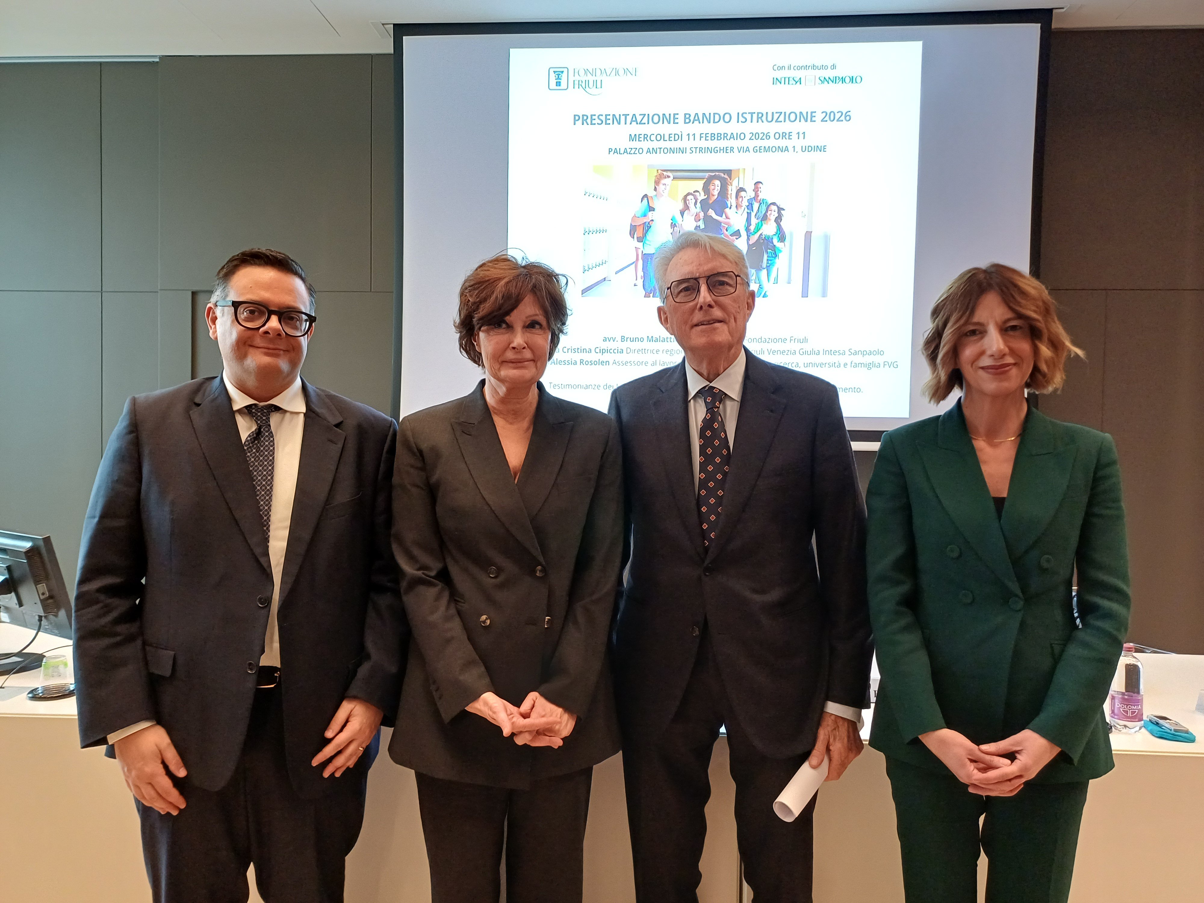 E' stato presentato presso Palazzo Antonini Stringher il Bando Istruzione per l'anno scolastico 2026-2027, con una consistenza di 600 mila euro grazie anche al contributo di Intesa Sanpaolo a sostegno di azioni dirette a favorire il potenziamento dell’attività didattica e la sperimentazione di modelli formativi innovativi.