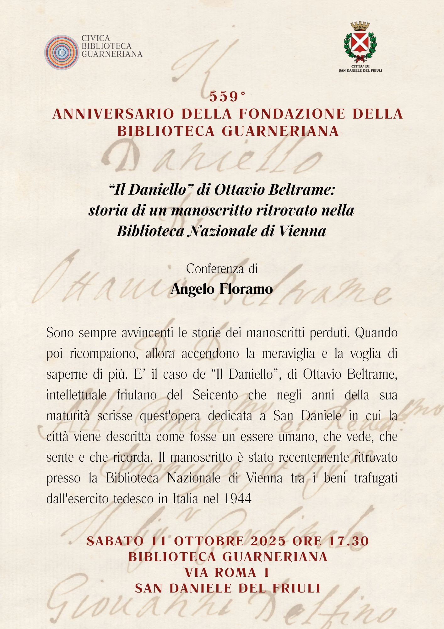 San Daniele del Friuli, Biblioteca Guarneriana - 11 ottobre 2025, ore 17:30