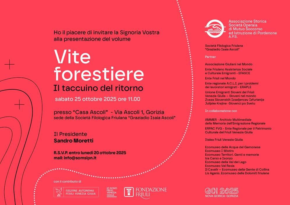 Associazione Storica Società Operaia di Mutuo Soccorso ed Istruzione di Pordenone - Società Filologica Friulana Graziadio Isaia Ascoli - Associazione Giuliani nel Mondo - EFASCE - Ente Friuli nel Mondo - ERAPLE - Unione Emigranti Sloveni del Friuli Venezia Giulia Sloveni nel Mondo