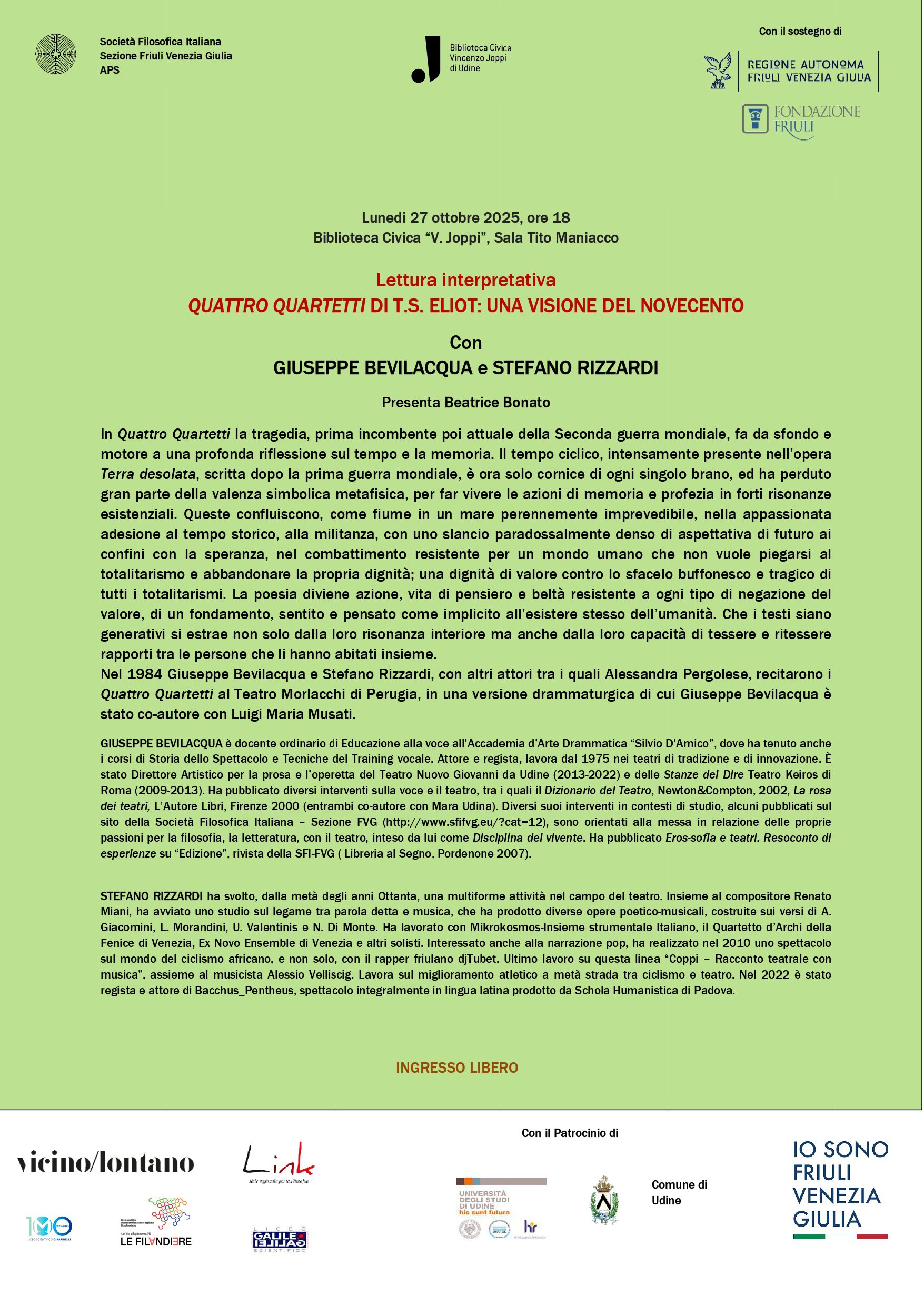 Udine, Biblioteca Civica “V. Joppi”, Sala Tito Maniacco - 27 ottobre 2025, ore 18.00