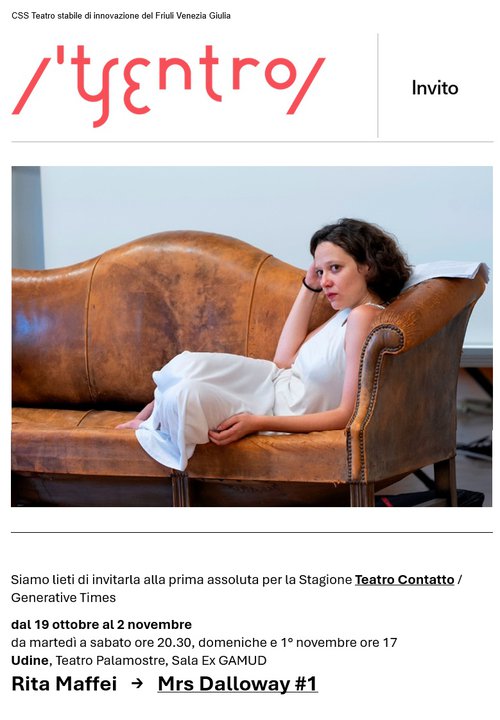 prima assoluta per la Stagione Teatro Contatto / Generative Times