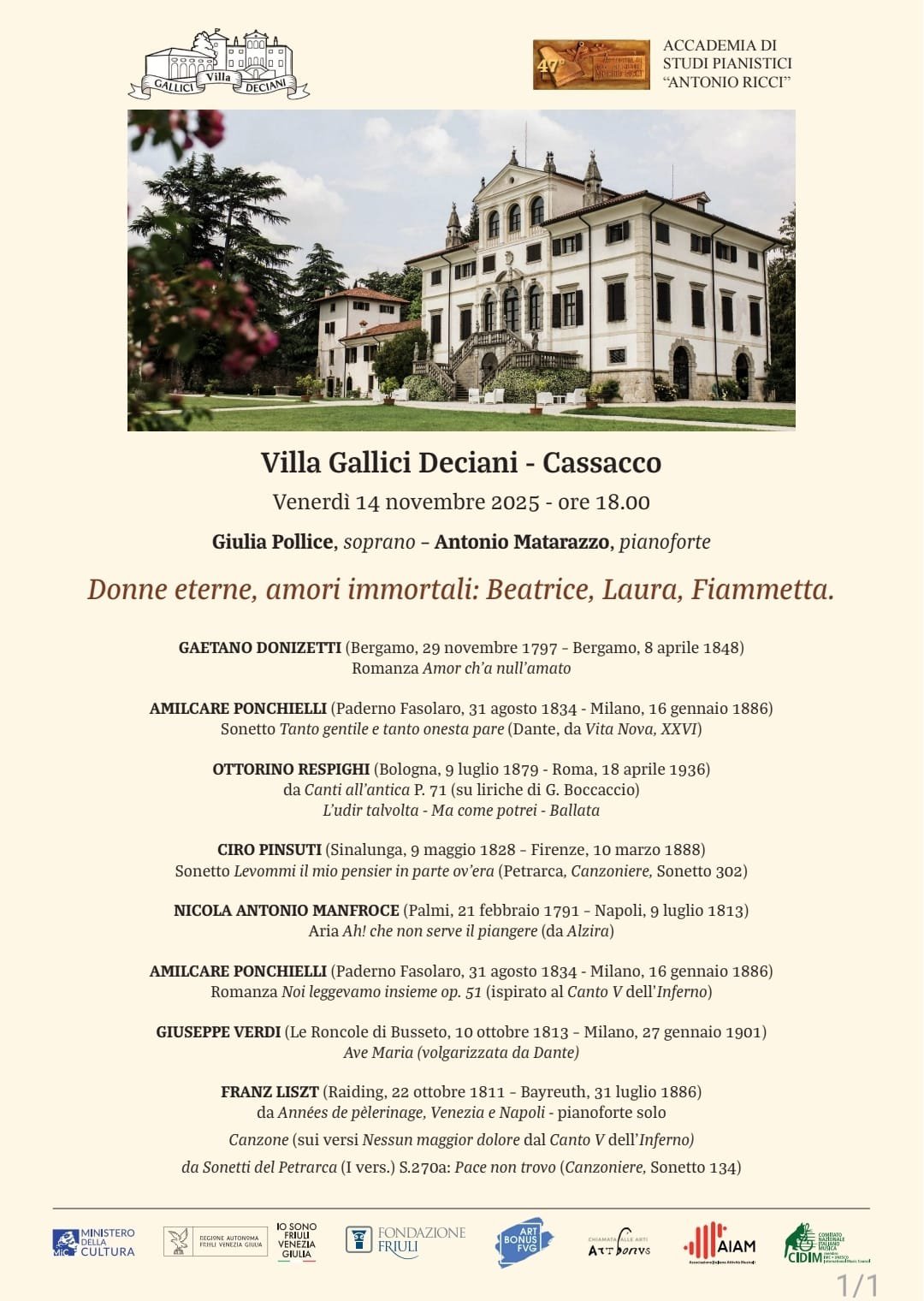 Cassacco, Villa Gallici Deciani - 14 novembre 2025, ore 18.00
