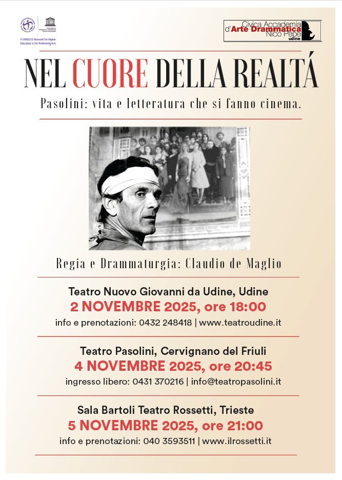 Teatro Nuovo Giovanni da Udine - 2 novembre 2025, ore 18:00 - Teatro Pasolini di Cervignano del Friuli - 4 novembre 2025, ore 20:45 - Teatro Rossetti in sala Bartoli a Trieste - 5 novembre 2025, ore 21:00