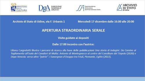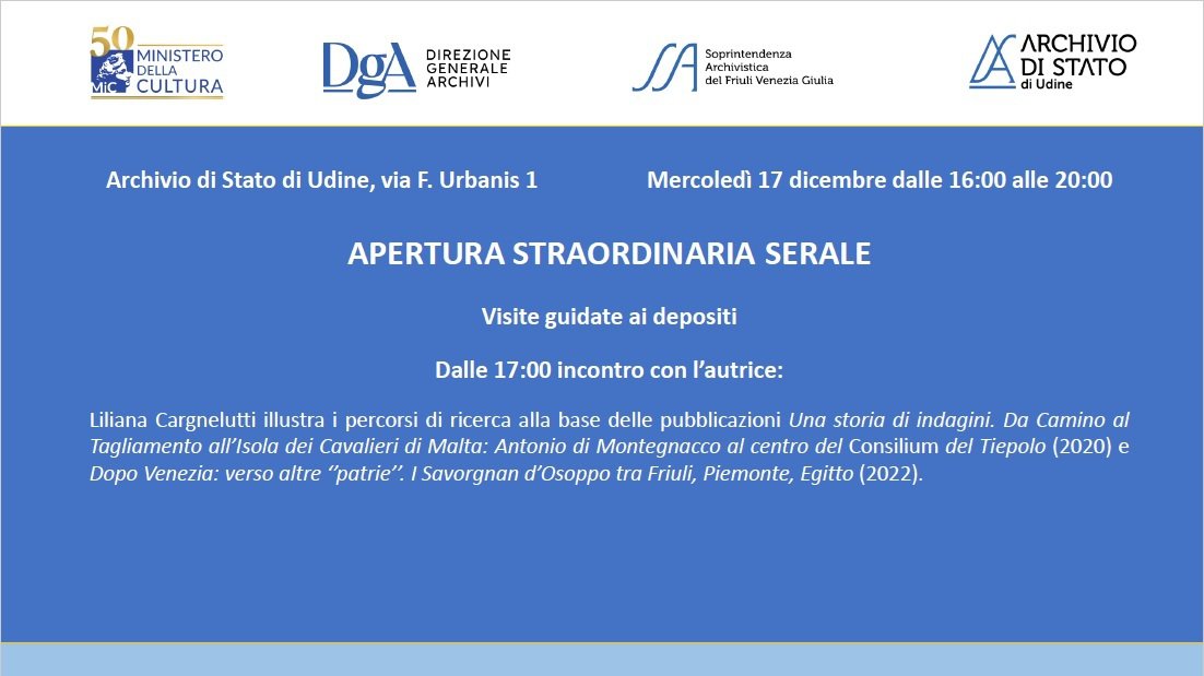 Udine, Archivio di Stato di Udine, via F. Urbanis 1 - Mercoledì 17 dicembre dalle 16:00 alle 20:00