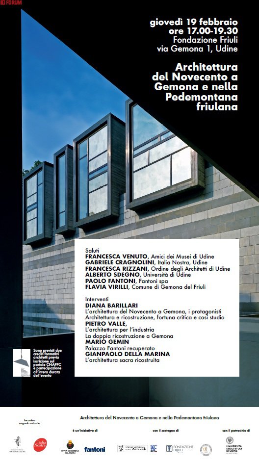 Associazione Udinese Amici dei Musei e dell’Arte - Italia Nostra Udine - Ordine degli Architetti di Udine - UNIUD - Fantoni spa - Comune di Gemona del Friuli - Fondazione Friuli