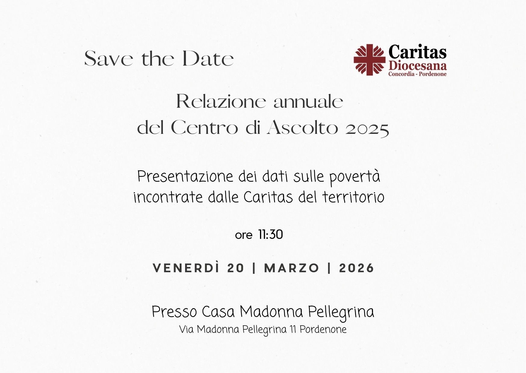 Pordenone, Casa Madonna Pellegrina - 20 marzo 2026, ore 11.30