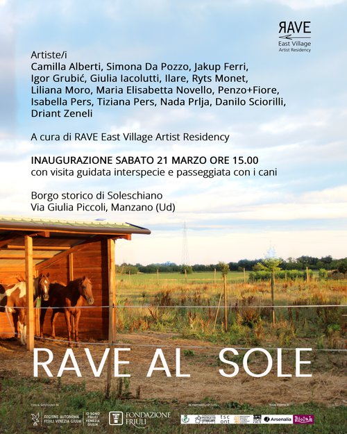 RAVE East Village Artist Residency - Regione Autonoma Friuli Venezia Giulia - IOSONOFRIULIVENEZIAIULIA - Fondazione Friuli - Comune di Trivignano Udinese - ALL/Università degli Studi di Udine - Fondazione Pistoletto Cittadellarte - Trieste Contemporanea - Arteventi - Biolab – Plant Based Food. Main partner Arsenalia