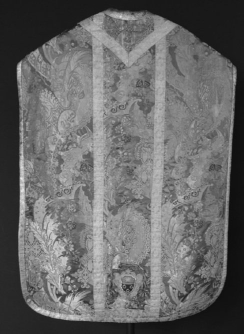 Il Museo ha provveduto al progetto di restauro conservativo di alcuni manufatti tessili del 18° secolo di fattura veneziana, in lampasso di seta verde. Si tratta di una Pianeta (cm 109x76), una Stola (cm 202x24) e un Manipolo (cm 105x24). Il tessuto presentava tensioni e deformazioni lungo le cuciture di confezione, con vistosi sollevamenti delle trame metalliche ed estesi rammendi, tagli su uno dei lati anteriori e tratti parzialmente scuciti anche sui galloni. Inoltre, la fodera in seta della Pianeta appariva lisa con piccole lacune lungo tutto il profilo, sulle spalle e in corrispondenza del petto. Le stesse forme di degrado compromevano la stola e il manipolo, dove le trame dorate erano notevolmente sollevate o ancorate da rammendi grossolani. L'intervento proposto dalla restauratrice Simonetta Giacomini ha previsto la pulitura meccanica con aspirazione per eliminare il particellato depositato fra i filati, proteggendo le parti più degradate con veli di tulle, lo smontaggio della fodera, il lavaggio in acqua, l'asciugatura, il posizionamento su tavolo di vetro e la fermatura con pesi per riacquisire la forma corretta, la pulitura del tessuto con acqua demineralizzata e dei filati metallici con tamponi di soluzione appropriata, la vaporizzazione su membrana goretex per ammorbidire i tessuti, la spillatura e la rimozione dei rammendi, la tintura del tessuto di supporto e del filo di seta utilizzati per il consolidamento a cucito, la fermatura delle trame sciolte e delle lacune a punto posato, la protezione delle parti più lise con velo di maline, la cucitura a punto filza con filo di poliestere per i fili metallici sollevati e il rimontaggio delle parti.