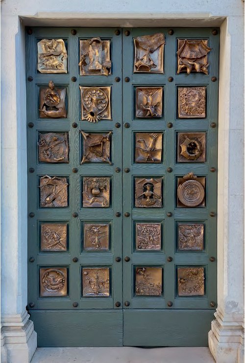 La Parrocchia del Santissimo Corpo di Cristo, in precedenza aveva fatto realizzare 24 formelle in bronzo da applicare al portale principale del Duomo di Valvasone dall'artista Edo Janich, già approvate dalla Soprintendenza e dalla Diocesi. A completamento dell'intervento, la Parrocchia ha inteso provvedere al restauro e al consolidamento del portone per permetterne l'installazione. L'intervento proposto dallo stesso artista Janich ha previsto il posizionamento di una guida a terra a sfera rotativa a sostegno del portone, la pulitura, la stuccatura, la verniciatura in colore rosso cupo del portone principale, della porta lato nord e del portoncino sacrestia lato sud, l'installazione sulla faccia esterna del portone di 42 calotte sferiche con stelle smaltate e dorate, fissate con perno sui fori esistenti (a sostituzione dei coni già presenti), collegate sulla faccia interna da borchie con stelle, a copertura e fermo dei bulloni che fissano le singole formelle. Inoltre, le calotte con stelle a otto punte dorate sono state installate anche sulle altre due porte per dare unità formale. Infine, si è provveduto alla pulitura e alla doratura delle formelle bronzee per evitarne l'ossidazione.